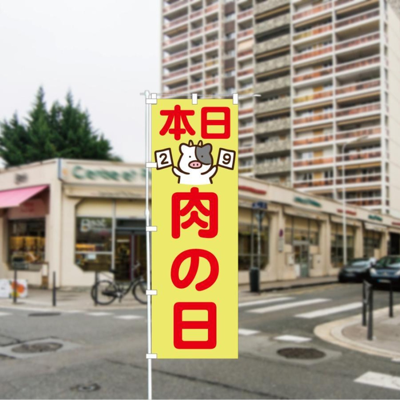 関連キーワード:のぼり 旗 本日肉の日 にくのひ 29 イラスト 牛 ウシ うし 目立つ 直売 セール 安い 特売日 600*1800