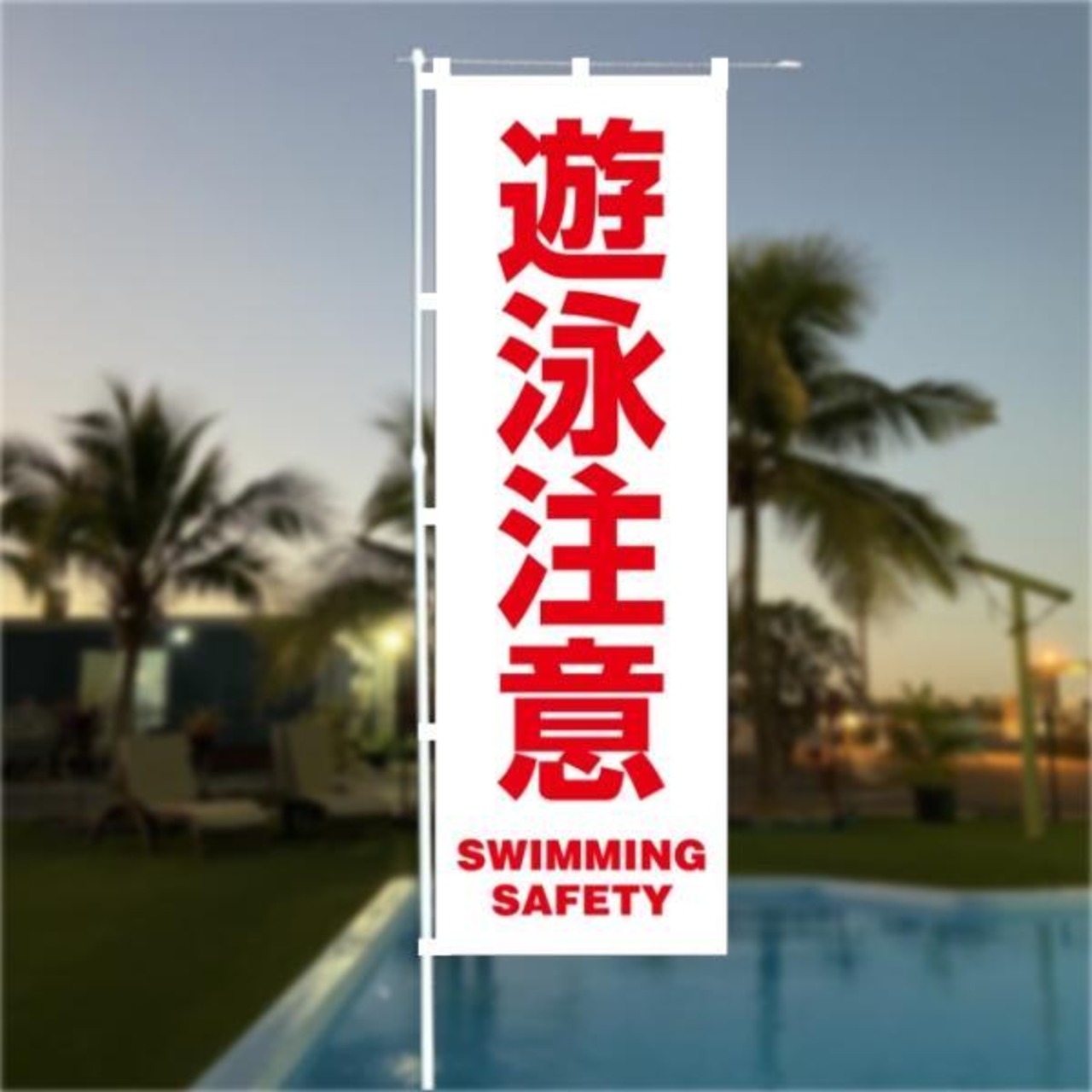のぼり 遊泳注意(ホワイト)